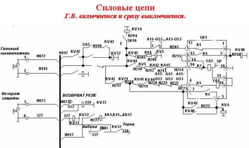 Выход: кнопку «Главный выключатель» не включать. KV42 головной секции включить принудительно. На реле KV44 (обеих секций) поставить изоляцию под блокировку с проводами Н202—Н210, провод Н210 запитать от провода Э80 (реле KV58) на обеих секциях. На провод Н220 (блокировка KV44) кратковременно подать питание от провода Э80 (реле KV58). Для включения