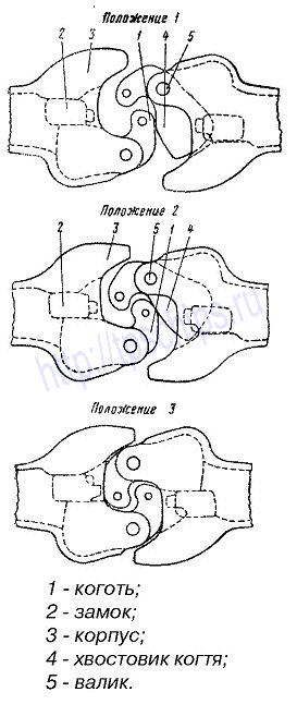 Принцип работы автосцепки СА-3 хорошо виден на анимированном рисунке.