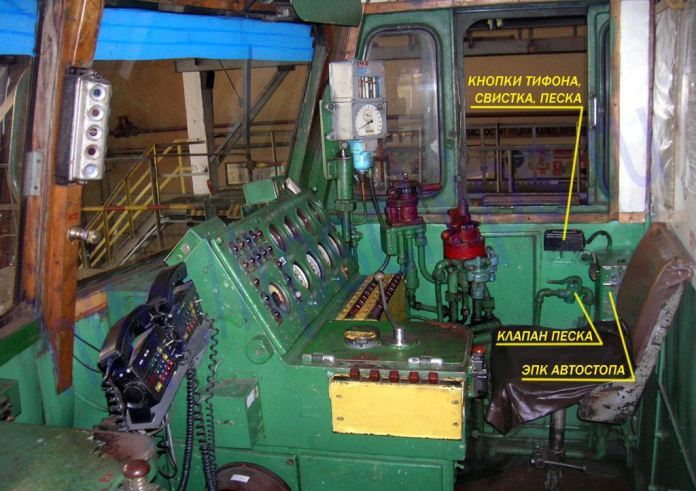 Контроллеры машиниста имеют по две рукоятки: главную с позициями О, автоматическое выключение, ручное выключение, фиксация выключения, фиксация пуска, ручной пуск, автоматический пуск и реверсивную рукоятку с позициями назад - полное поле, 0, вперед полное поле и три позиции ослабленного поля для движения вперед.